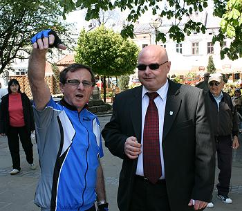 Prezydent Ryszard Nowak z najstarszym uczestnikiem rajdu