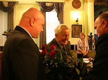 Podczas sesji Prezydent Ryszard Nowak, Zastępca Prezydenta Jerzy Gwiżdż oraz sądeccy radni podziękowali Arturowi Królowi - Przewodniczącemu ZO Wólki za długoletnią pracę na rzecz społeczności lokalnej.