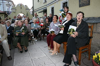 Ryszardowi Nowakowi towarzyszyła pani wiceprezydent Bożena Jawor. Drukarnia BAAD dostarczyła wszystkim chętnym śpiewniki z tekstami pieśni narodowych i około godziny 19.00 rozpoczęło się wspólne muzykowanie. Małgorzata Grybel, która opowiadała o historii wykonywanych pieśni, czuwała także nad przebiegiem koncertu, łowiąc bystrym okiem talenty wokalne wśród tłumnie przybyłych na imprezę mieszkańców miasta. Dzięki temu, chór prowadzących koncert talentów śpiewaczych, powiększał się z minuty na minutę.