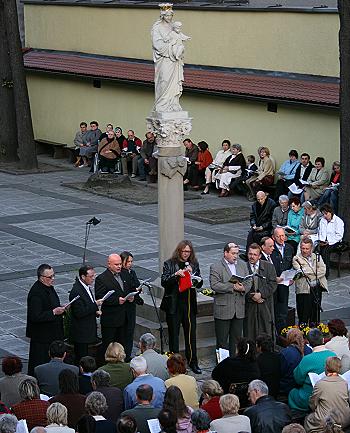 W trakcie koncertu wykonywano pieśni patriotyczne i maryjne. Ponieważ miesiąc maj wiąże się nierozerwalnie z majówkami, miejsce centralne podczas patriotycznego śpiewania zajmowała figura Marii z Dzieciątkiem, która góruje nad dziedzińcem klasztoru Ojców Jezuitów.