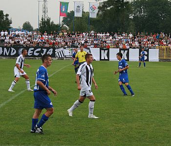 W pierwszej połowie zdecydowanie dominowała Sandecja, która dyktowała warunki gry, przeprowadzała sporo akcji, jednak tylko jeden raz udało się i to minutę przed końcem pierwszej połowy Gawęcki pokonał bramkarza MKS Kluczbork.