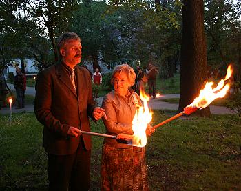 Po godzinie 21.00, profesor Szarek na werandzie prezentował archiwalne filmy z działalności „Małej Galerii”.