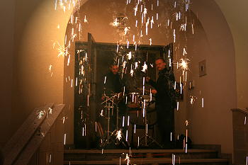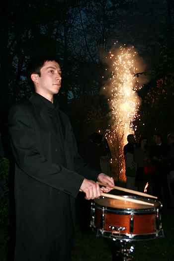 W najbliższej okolicy budynku „Małej Galerii”, w parku, pomiędzy drzewami rozwieszono kolorowe wstęgi, z których po uroczystym otwarciu uformowano różnobarwne kotyliony. Miłośnicy swobodnej atmosfery, charakterystycznej dla „Małej Galerii” poprzypinali sobie do klap marynarek i żakietów owe ozdoby i z zapartym tchem przyglądali się pokazom sztucznych ogni, które rozjaśniły całe planty. W odpaleniu fajerwerków uczestniczyli wiceprezydenci, radni, dyrektor Wydziału Kultury i Sportu – Józef Kantor, profesor Andrzej Szarek i szefowa „Małej Galerii” – Alicja Hebda. Podczas pokazu sztucznych ogni, na instrumentach perkusyjnych koncertowali muzycy przygotowani przez adiunkta Akademii Muzycznej w Krakowie – Stanisława Welanyka.