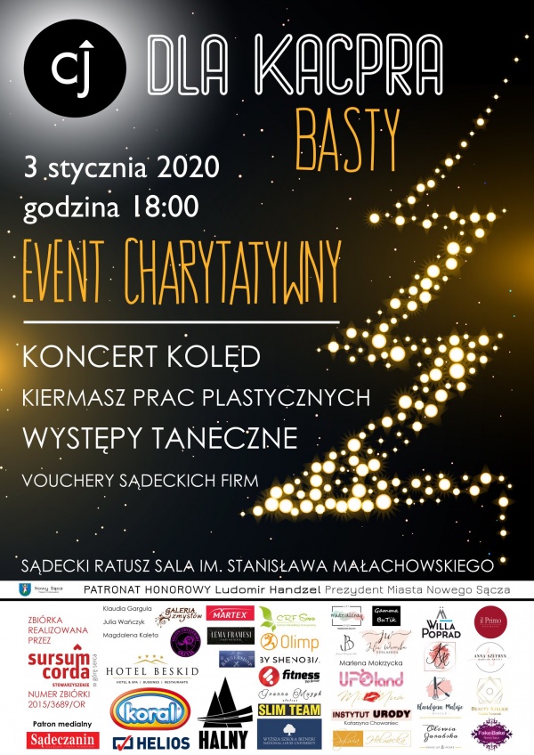 Młodzi aktywni sądeczanie zapraszają na wydarzenie „Cel Jutra dla Kacpra Basty”. Celem jest zebranie funduszy dla 15-letniego Kacpra, który ponownie zmaga się z chorobą. Wygrał walkę z nowotworem kości udowej nogi prawej. Niestety koszmar powrócił. Pojawiły się guzy, tym razem na prawym płucu. Na leczenie potrzebne jest ponad 100 tysięcy złotych, dlatego młodzi sądeczanie wspólnymi siłami chcą pomóc. Wydarzenie swoim patronatem objął prezydent Ludomir Handzel. Zbiórka realizowana jest przez Sursum Corda, cały dochód zostanie przeznaczony na leczenie Kacpra.