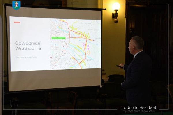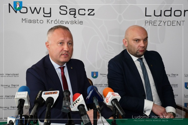 W sali reprezentacyjnej odbyła się konferencja prasowa, podczas której prezydent Ludomir Handzel wraz ze swoim zastępcą Arturem Bochenkiem, odnieśli się do niektórych punktów dzisiejszej sesji Rady Miasta. Prezydent Ludomir Handzel mówił również o budowie tzw. „Mostu Południowego” oraz obwodnicy wschodniej Nowego Sącza.