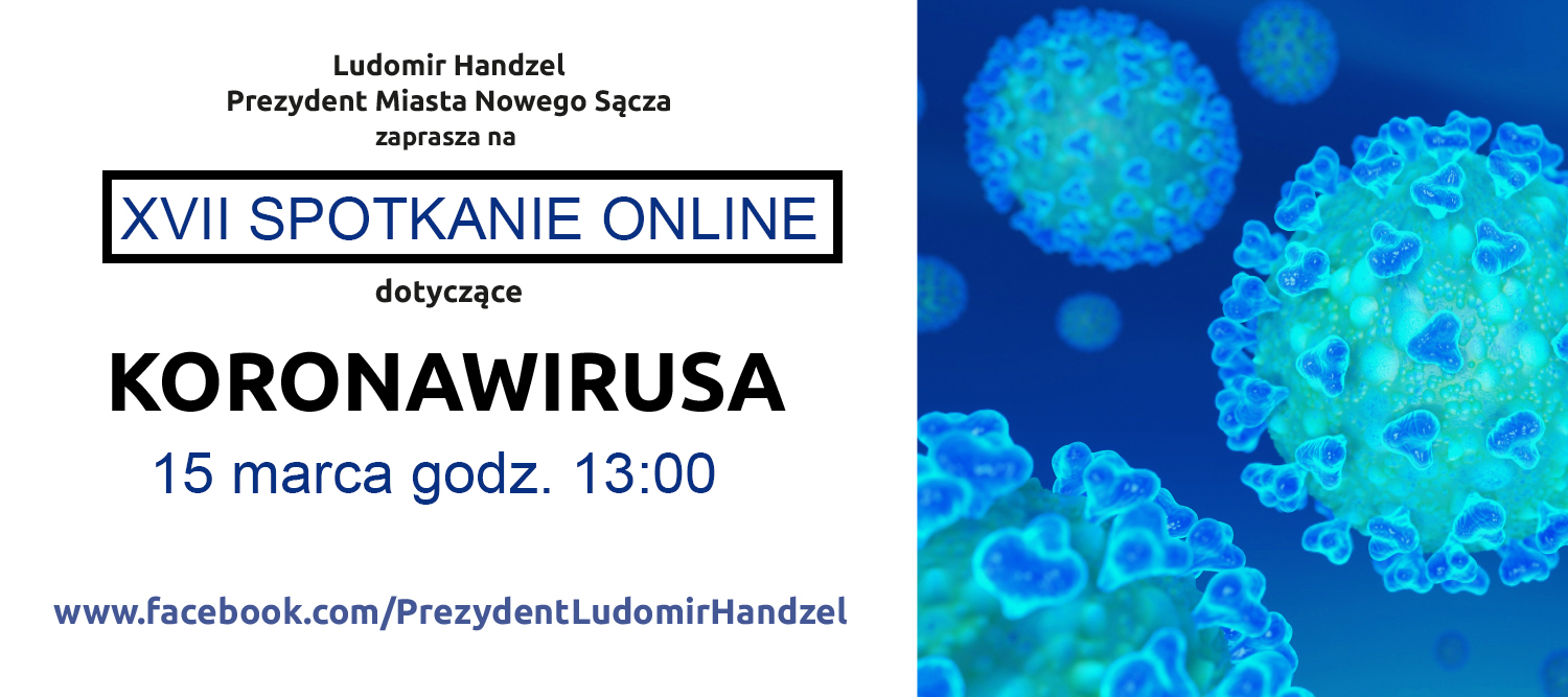 Prezydent Ludomir Handzel zaprasza wszystkich mieszkańców na spotkanie on-line. Omówiona zostanie aktualna sytuacja epidemiologiczna, związana z pandemią Koronawirusa. Zapraszamy na fanpage prezydenta, na facebook w niedzielę (15 marca) o godz. 13:00.
