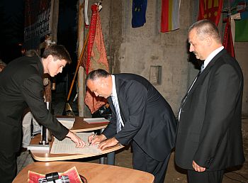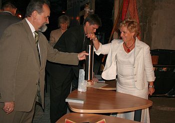 Wicewojewoda Stanisław Sorys podkreślił jak bardzo rozwija się Nowy Sącz a wiceprezydent Bożena Jawor pogratulowała pasji twórczej dyrektorowi Malczakowi, przekazując do wmurowania sądecki dukat.