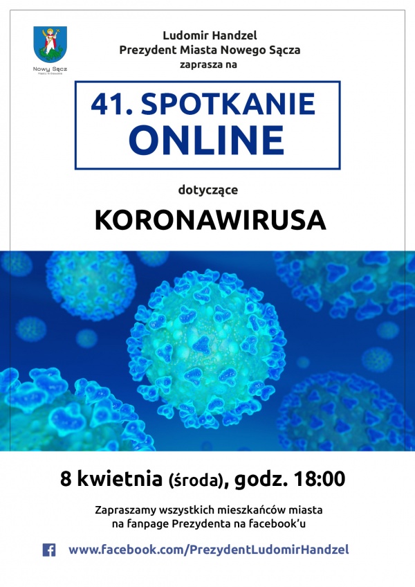 Prezydent Ludomir Handzel zaprasza wszystkich mieszkańców na spotkanie on-line. Omówiona zostanie aktualna sytuacja epidemiologiczna, związana z pandemią Koronawirusa. Zapraszamy na fanpage prezydenta, na facebook w środę (8 kwietnia) o godz. 18:00.