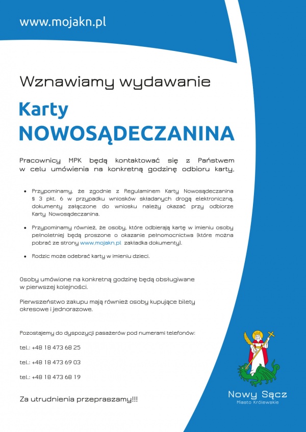 Pracownicy MPK będą kontaktować się z Państwem w celu umówienia na konkretną godzinę odbioru karty. Osoby umówione na konkretną godzinę będą obsługiwane w pierwszej kolejności. Pierwszeństwo zakupu mają również osoby kupujące bilety okresowe i jednorazowe.