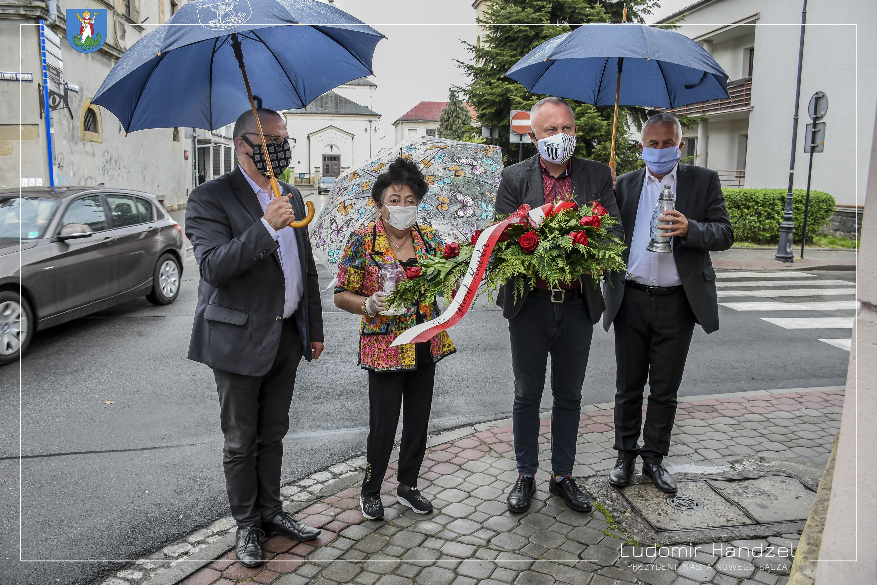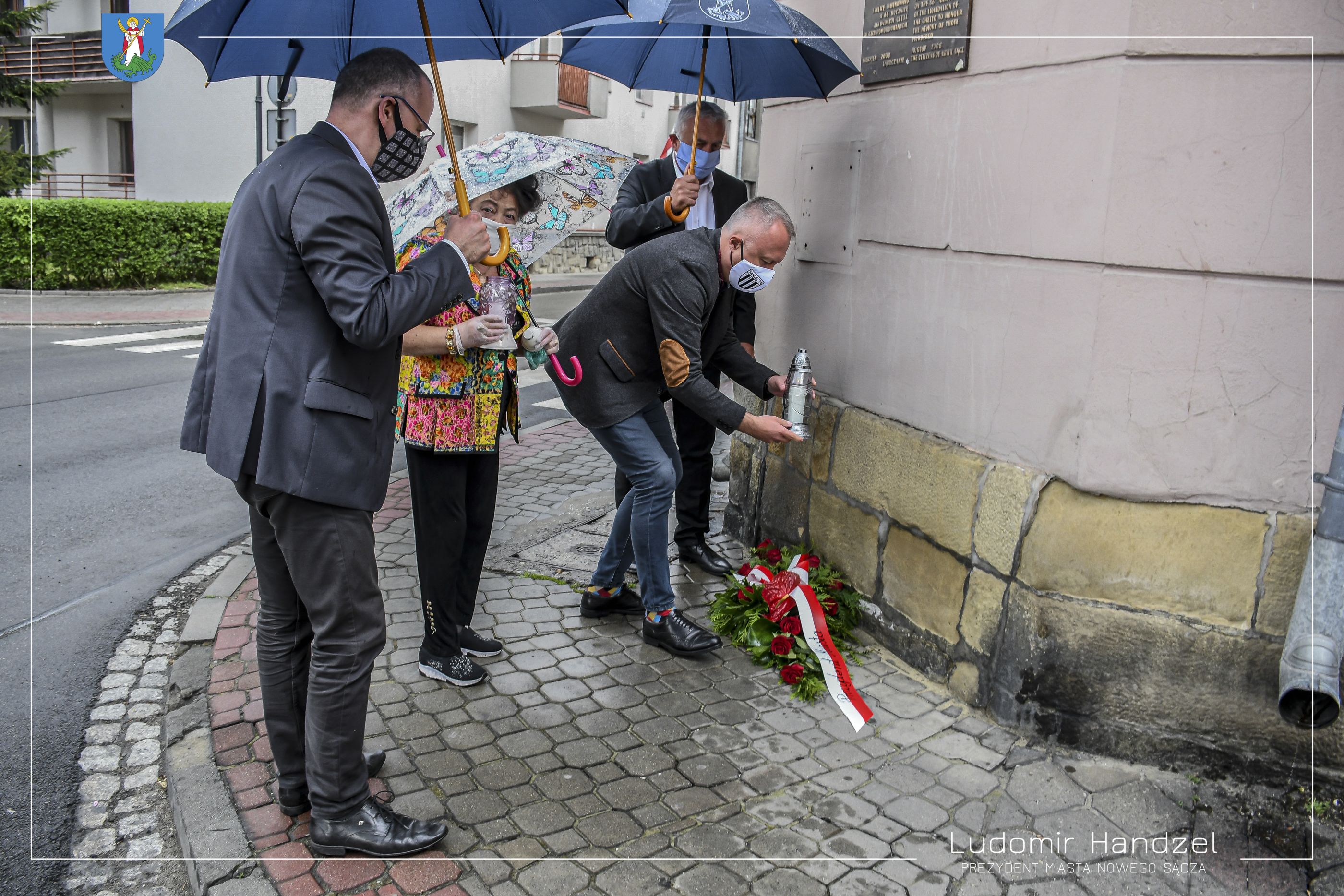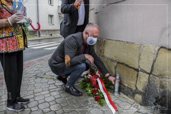 Prezydent Miasta Nowego Sącza Ludomir Handzel wraz z Dyrektorem Wydziału Komunikacji Społecznej i Kultury dr. Marcinem Porębą złożyli kwiaty pod tablicą upamiętniającą śmierć Sadeckich Żydów którzy zginęli z rąk Niemców w roku 1942.