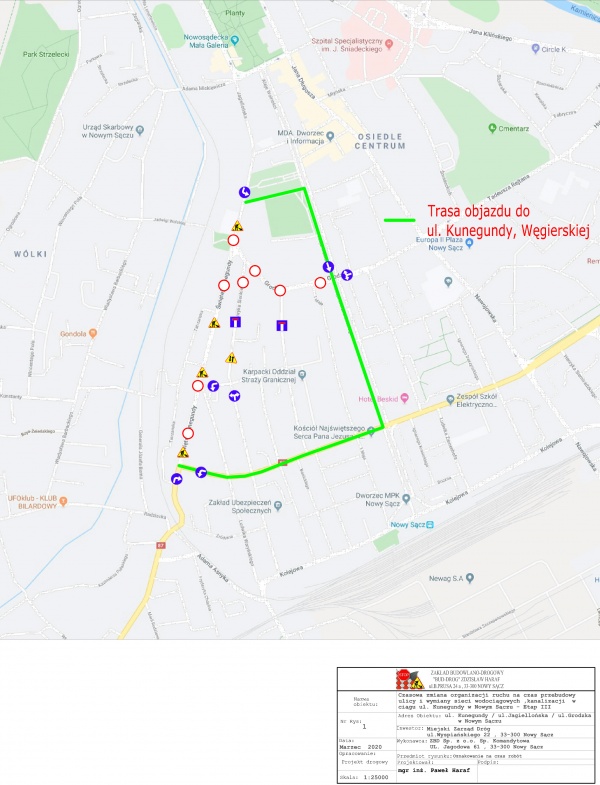 W związku z przystąpieniem do kolejnego etapu przebudowy ulic: Kunegundy i Grodzkiej w dniu 11.05.2020 wprowadzona zostanie zmiana czasowej organizacji ruchu.