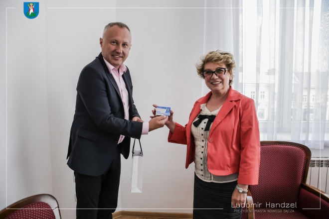 Do mieszkańców Nowego Sącza trafiło już 20 tysięcy Kart Nowosądeczanina. Kartę z numerem 20 000 oficjalnie wręczył Pani Ewie prezydent Ludomir Handzel.