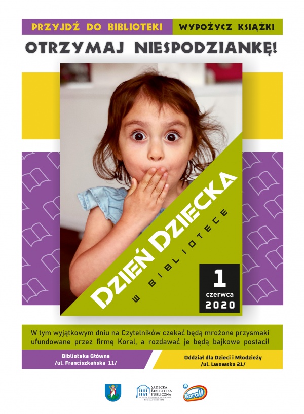 Dzień Dziecka to radosne święto. W tym szczególnym dniu postaramy się wywołać jak najwięcej uśmiechów! Czytelnicy, którzy 1 czerwca br. wypożyczać będą książki w Bibliotece Głównej (ul. Franciszkańska 11) i Oddziale dla Dzieci i Młodzieży (ul. Lwowska 21) otrzymają mrożony przysmak ufundowany przez firmę KORAL. Niespodzianki rozdawać będą bajkowe postaci.