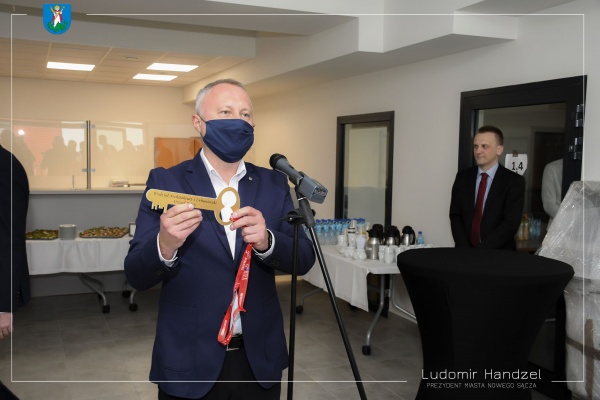 Prezydent Ludomir Handzel przekazał symboliczny klucz do budynku dyrektor Wydziału Architektury i Urbanistyki Jolancie Polańskiej oraz dyrektorowi Sądeckiego Urzędu Pracy Jarosławowi Glińskiemu.