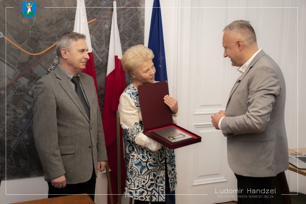 Prezydent Ludomir Handzel gościł w gabinecie dyrektor Sądeckiego Pogotowia Ratunkowego Bożene Hudzik i zastępcę dyrektora Janusz Geroch.