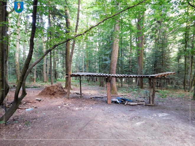 Dokonano również wycinki i uszkodzenia drzew, krzewów i roślin oraz budowę wiaty i skoczni dla rowerów.