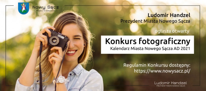 Prezydent Miasta Nowego Sącza Ludomir Handzel zaprasza do udziału w otwartym konkursie fotograficznym „Kalendarz Miasta Nowego Sącza A.D. 2021”.