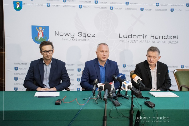 W sali reprezentacyjnej Ratusza odbyła się konferencja prasowa, podczas której prezydent Ludomir Handzel zaprezentował program ograniczenia niskiej emisji w Nowym Sączu oraz przekazał istotne informacje na temat działań, które mają wpłynąć na poprawę jakości powietrza w Nowym Sączu.