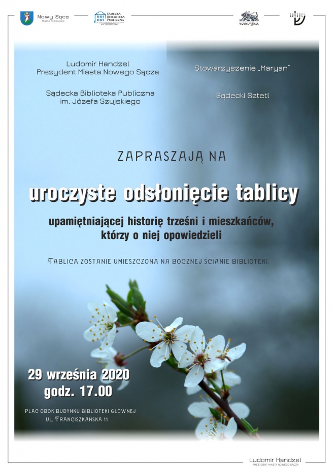 Jesienią zeszłego roku na skwerku przy ulicy Kazimierza Wielkiego obok Sądeckiej Biblioteki Publicznej posadzono trześnię, na pamiątkę rosnącego w czasie wojny do lat sześćdziesiątych biało kwitnącego drzewka.