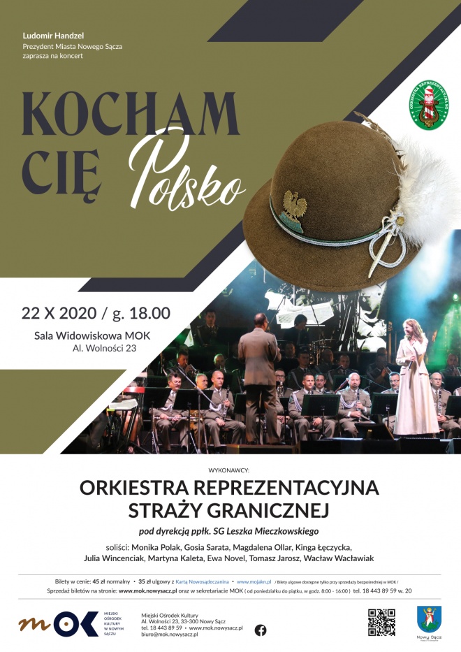 Ludomir Handzel Prezydent Miasta Nowego Sącza zaprasza na koncert „Kocham Cię Polsko” w wykonaniu Orkiestry Reprezentacyjnej Straży Granicznej.