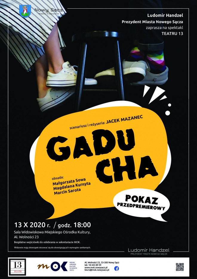 Ludomir Handzel Prezydent Miasta Nowego Sącza zaprasza na pokaz przedpremierowy spektaklu TEATRU 13.