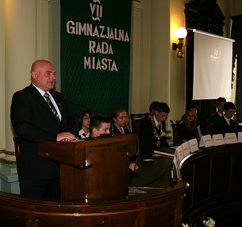 Pierwszy został wywołany prezydent miasta – Ryszard Nowak, który musiał złożyć sprawozdanie z działalności prezydenta pomiędzy VI a VII Gimnazjalną Radą Miasta. Prezydent mówił także o konieczności zwiększenia troski o uczniów. Ważne jest to, aby z nowosądeckich szkół wywodzili się uczniowie władający językami obcymi, umiejący świetnie posługiwać się komputerem, mający ugruntowaną wiedzę. Prezydent miasta będzie wspierał wszystkie inicjatywy ułatwiające młodzieży start w dorosłe życie.