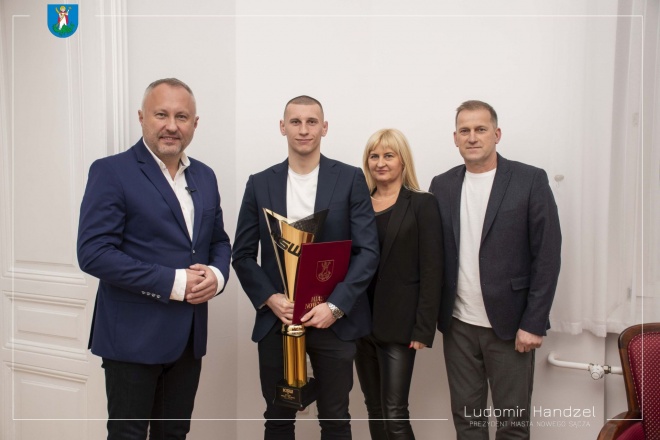 Prezydent Ludomir Handzel złożył gratulację na ręce 22-letniego Sądeczanina Roberta Ruchały, który zwyciężył podczas debiutanckiego występu w Konfrontacji Sztuk Walki na gali KSW 56. w Łodzi.