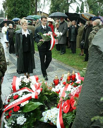 Wiązanki biało-czerwonych kwiatów przy pomniku złożyli m.in. wiceprezydent Nowego Sącza – Jerzy Gwiżdż, wicewojewoda – Stanisław Sorys, członkowie Zarządu Województwa Małopolskiego – Józef Zygmunt i Waldemar Olszyński, radni – Grzegorz Dobosz i Robert Sobol, przedstawiciele Policji, kombatanci i młodzież.
