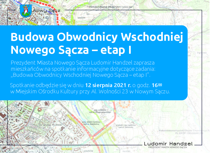 Prezydent Miasta Nowego Sącza Ludomir Handzel zaprasza mieszkańców na spotkanie informacyjne dotyczące zadania: „Budowa Obwodnicy Wschodniej Nowego Sącza – etap I”