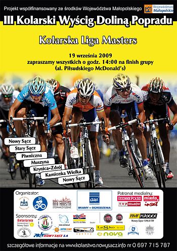 Urząd Miasta Nowego Sącza, Starostwo Powiatowe i Sądeckie Towarzystwo Cyklistów organizują III Szosowy Wyścig Kolarski Doliną Popradu, który rozegrany zostanie 19 września (sobota) 2009 roku. Partnerem strategicznym jest Stowarzyszenie ” Dla Miasta”.