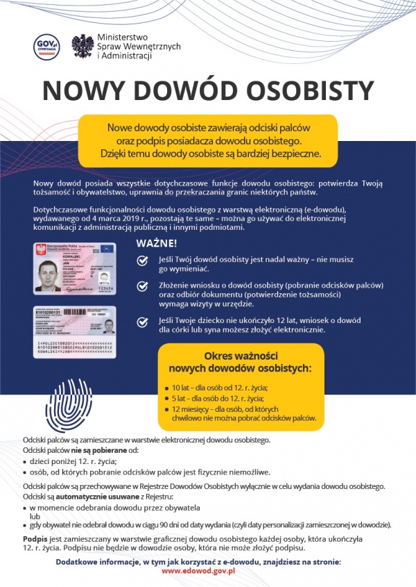 Więcej informacji na temat nowego dowodu osobistego można uzyskać nagov.pl.