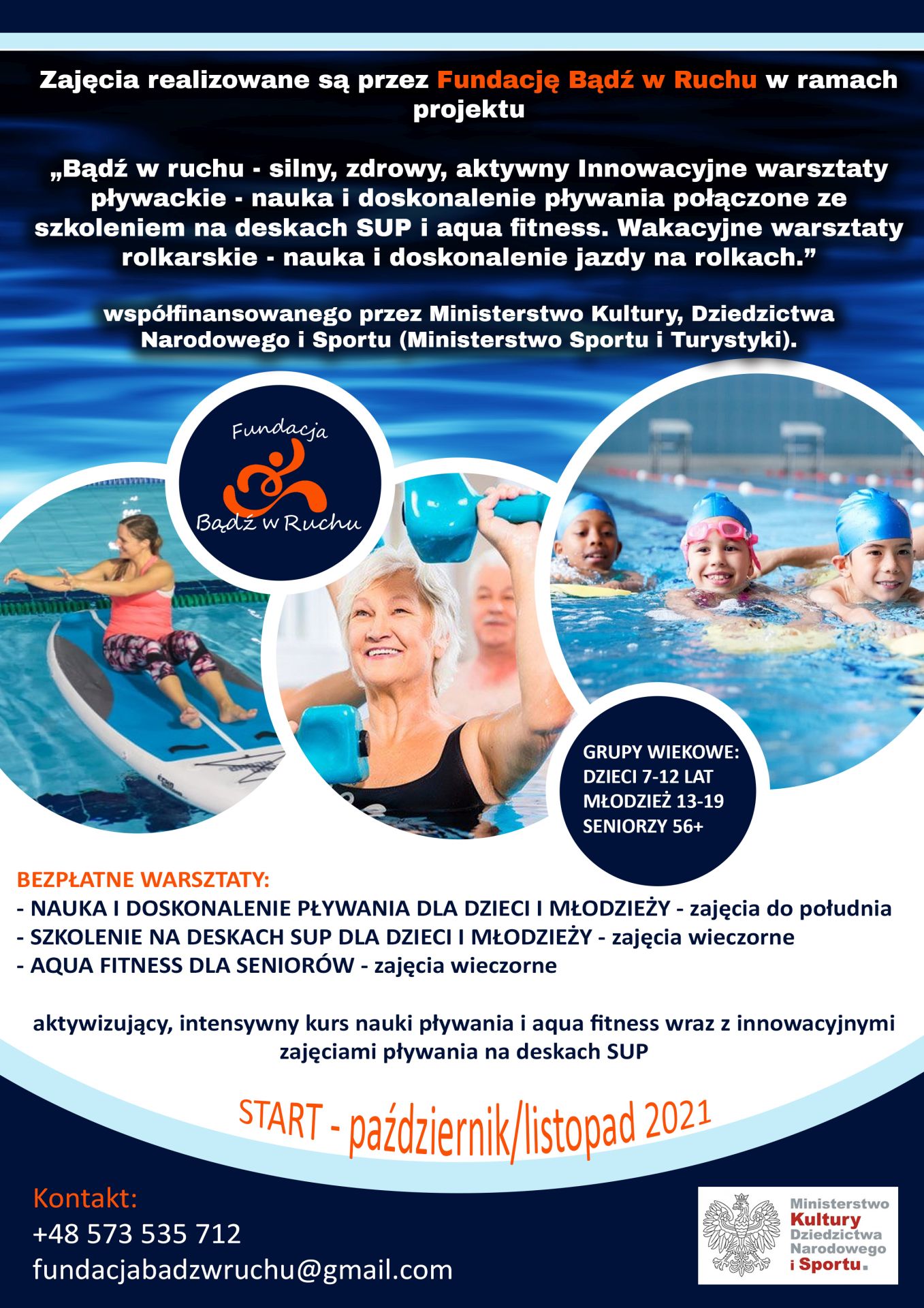 Zajęcia realizowane są w ramach projektu Bądź w ruchu – silny, zdrowy, aktywny, współfinansowanego przez Ministerstwo Sportu i Turystyki.