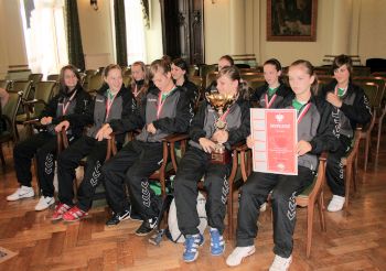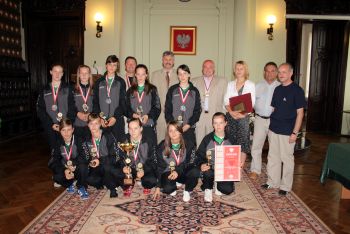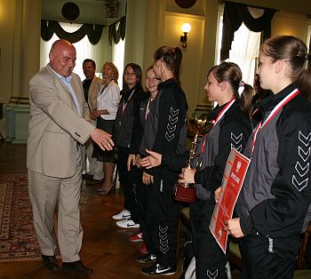 Prezydent gratulował zawodniczkom tak wysokiego osiągnięcia, przekazał nagrodę pieniężną, okolicznościowe medale i pamiątkowe grawertony dla opiekunów i sponsora klubu.