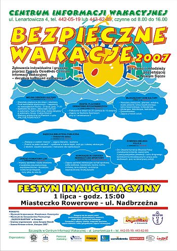 Powołany przez Prezydenta Miasta zespół do spraw organizacji letniego wypoczynku dzieci i młodzieży opracował ofertę akcji „Bezpieczne Wakacje 2007”.Tradycyjnie w ramach realizacji Gminnego Programu Profilaktyki
