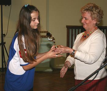 Boźena Jawor gratulowała sukcesu zarówno zawodniczkom – jak i rodzicom piłkarek, które na co dzień uczęszczają do sądeckiej dwójki. Jest to godne uznania i ukazania innym rodzicom, jako przykład, w jaki sposób można inwestować w rozwój dzieci – mówiła pani wiceprezydent. Następnie dyrektor szkoły – Franciszek Wolak podarował zastępcy prezydenta Bożenie Jawor pamiątkowe zdjęcie całego zespołu UKS Olimpia Nowy Sącz.