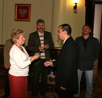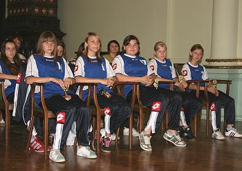 Wiceprezydent miasta Bożena Jawor gościła w ratuszu piłkarki ręczne z klubu sportowego Olimpia Nowy Sącz. Drużyna w składzie Baziak Kinga, Błaszczyk Monika, Bodziony Natalia, Cempa Marzena, Czop Joanna, Gołąb Joanna, Jurczak Wioletta, Kowalska Beata, Lubraniec Natalia, Magiera Alicja, Prechidko Klaudia, Sarata Magdalena, Setny Patrycja, Sikorska Kamila, Tokarczyk Magdalena i Waligóra Karolina – wywalczyła szóste miejsce w zawodach o Puchar Polskiego Związku Piłki Ręcznej. Wraz z zawodniczkami do sali reprezentacyjnej ratusza przyszli trenerzy – Paweł Szafran i Piotr Zalewski. Dyrektor Szkoły Podstawowej nr 2 w Nowym Sączu – Franciszek Wolak, wiceprezydent Bożena Jawor i dyrektor Wydziału Kultury i Sportu - Józef Kantor wręczyli zawodniczkom puchary za osiągnięcie świetnego wyniku we wspomnianych zawodach. Pamiątkowe trofea otrzymali także trenerzy.