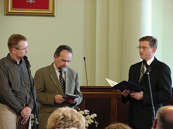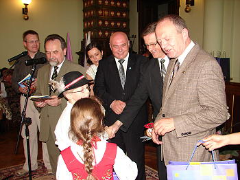 Prezydent miasta, wraz z dyrektorem MCK Sokół Antonim Malczakiem i wicemarszałkiem Leszkiem Zegzdą przyjęli od przedstawicieli wszystkich zespołów symboliczne podarunki i wręczyli pamiątki związane z miastem Nowym Sączem.