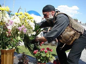 Około godziny 14.00 motory wjechały na płytę Rynku i odbyło się złożenie wiązanki kwiatów pod pomnikiem Jana Pawła II. W imieniu wszystkich miłośników jednośladów, kwiaty pod pomnikiem złożył Andrzej Czech, a w imieniu sądeckich policjantów – asp.szt. Beata Fröhlich, rzecznik prasowy Komendy Miejskiej Policji w Nowym Sączu. W chwilę później wykonano pamiątkowe zdjęcie uczestników zjazdu. Każdy chętny mógł otrzymać pamiątkowy brelok z wizerunkiem patrona kierowców – świętego Krzysztofa i z datą tegorocznej imprezy.