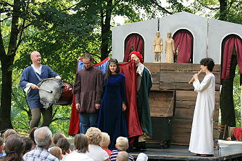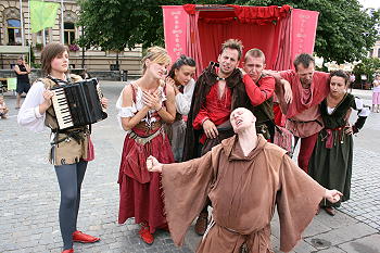 Ulice Nowego Sącza stały się na dwa dni otwartą sceną na wolnym powietrzu dla aktorów, którzy w ramach cyklu imprez pt: „Pierścień świętej Kingi” bawili mieszkańców miasta. W piątkowe popołudnie, w okolicach ruin zamku zespół „Teatru wędrownego” wystawił spektakl pt. „Żywot Świętej Kingi”. Widownia licząca około 100 osób doskonale bawiła się przy legendach i podaniach o sądeckiej świętej – ujętych w lekką, humorystyczną formę.