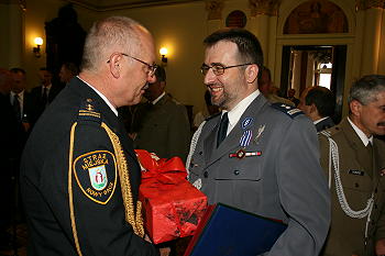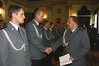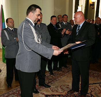 Komendant Miejski Policji w Nowym Sączu - Witold Bodziony oebrał z rąk Małopolskiego Komendanta Wojewódzkiego - Zbigniewa Stawarza Certyfikat Zarządzanie Jakością ISO 9001:2000 dla nowosądeckiej Miejskiej Komendy Policji.