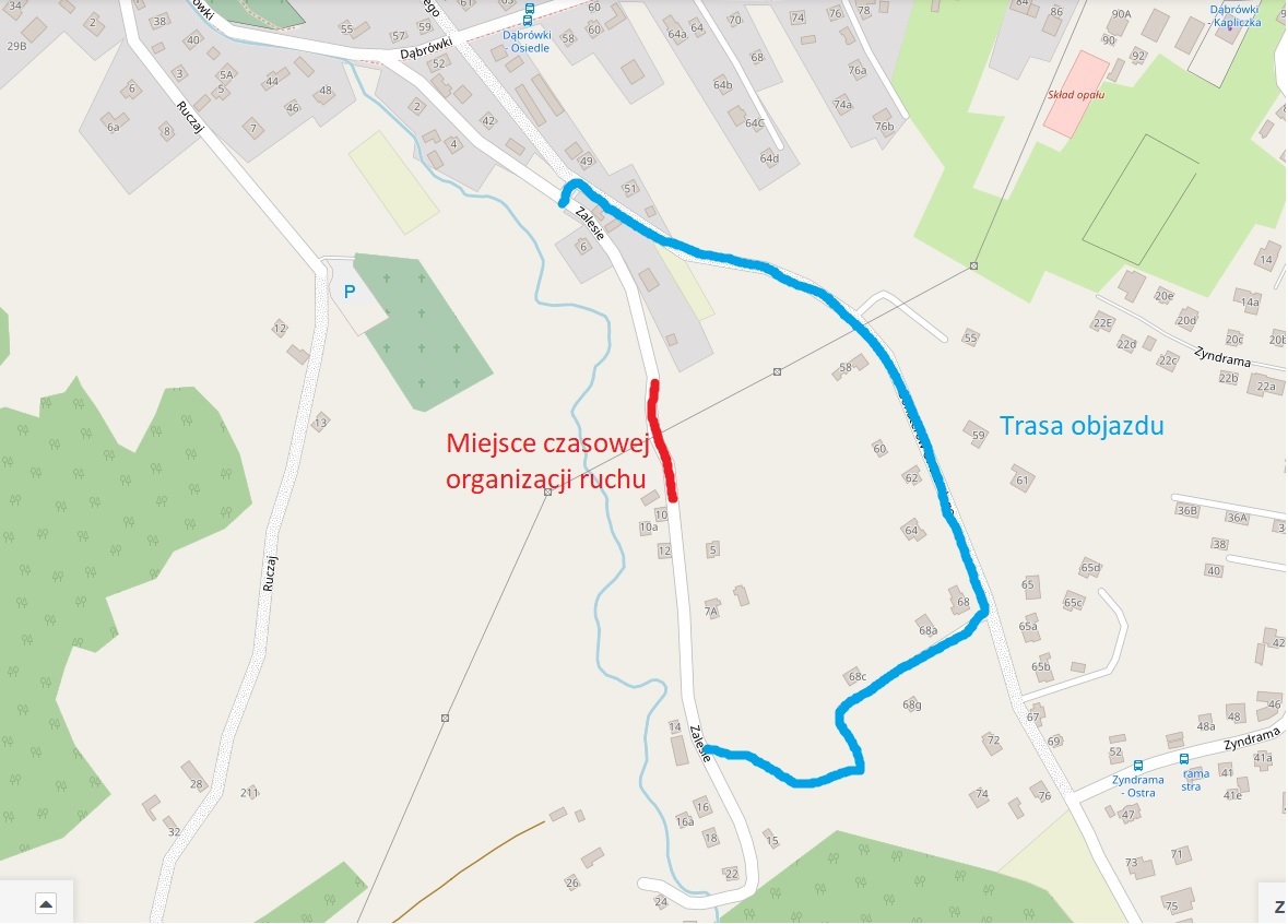 Miejski Zarząd Dróg w Nowym Sączu informuje, iż od dnia 24.07.2023r. (poniedziałek) od godziny 8.00 po zakończeniu robót przygotowawczych rozpocznie się następny etap prac przy stabilizacji osuwiska na ul. Zalesie. Wiązać się on będzie z czasowym zamknięciem odcinka ul. Zalesie. Trasa objazdu będzie prowadzić m.in. przez ul. Bohaterów Orła Białego, zgodnie z załączoną mapką.