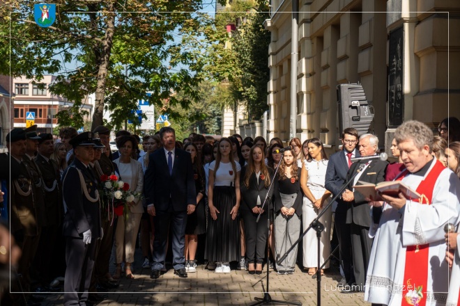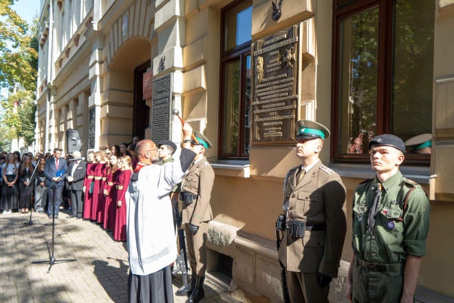 Po poświęceniu tablicy, delegacje złożyły pod nią wieńce w barwach narodowych.