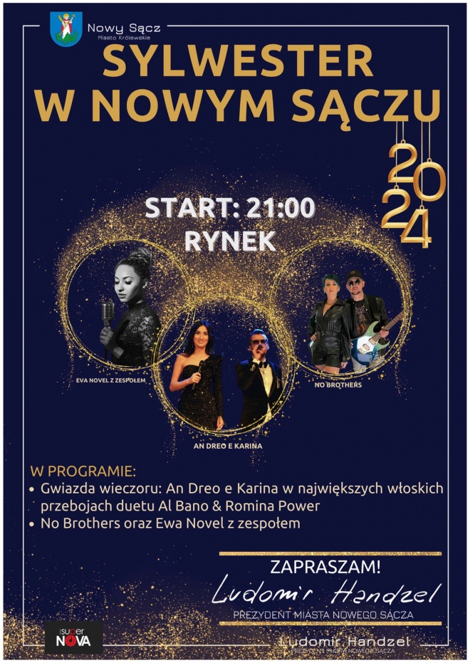 Prezydent Ludomir Handzel zaprasza mieszkańców na zabawę sylwestrową na nowosądeckim rynku.