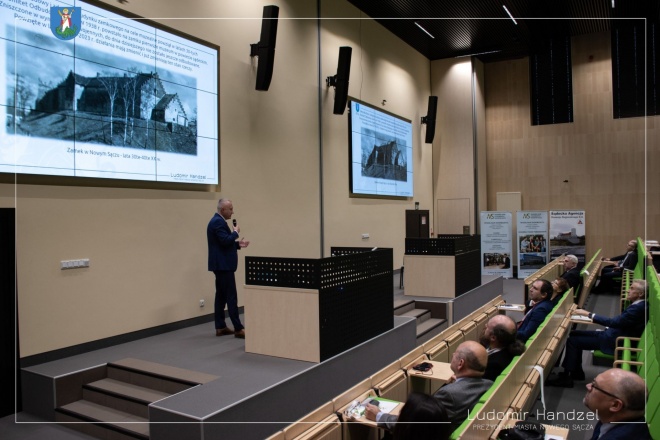 Prezydent wygłosił referat pt. „Badania archeologiczne i plany odbudowy Zamku Królewskiego w Nowym Sączu w działaniach władz miasta w latach 2019-2023”.