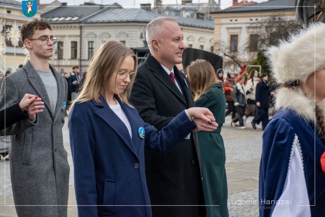 Maturzyści z I Liceum Ogólnokształcącego z Oddziałami Dwujęzycznymi towarzyszyli władzom miasta w tańcu. Wytypowano pięć uczennic i trzech uczniów.