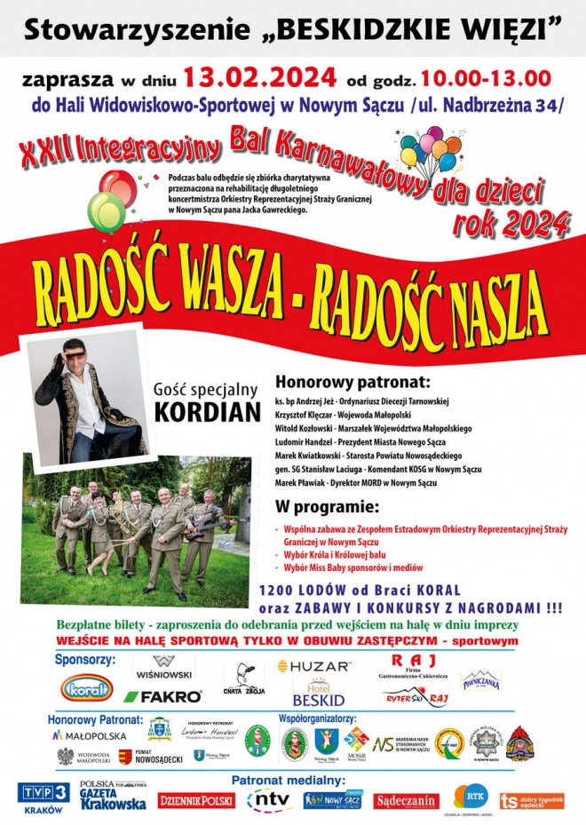 Stowarzyszenie "Beskidzkie Więzi" zaprasza na XXIII Integracyjny Bal Karnawałowy dla dzieci.