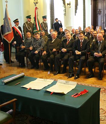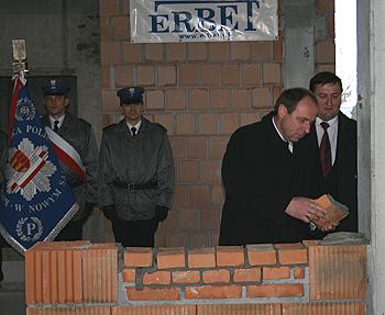 Prezydent Miasta Nowego Sącza Ryszard Nowak, ks. prałat Andrzej Jeż, parlamentarzyści – senator Stanisław Kogut i posłowie – Arkadiusz Mularczyk, Anna Paluch, Wiesław Janczyk, przewodniczący Rady Miasta – Artur Czernecki, sądeccy radni, wiceprzewodniczący Sejmiku Województwa Małopolskiego – Witold Kozłowski, wicestarosta sądecki – Mieczysław Kiełbasa, Wojewódzki Komendant Policji – Andrzej Rokita, Miejski Komendant Policji – Witold Bodziony wraz z zastępcami: Henrykiem Koziałem i Rafałem Leśniakiem uczestniczyli w uroczystym wmurowaniu aktu erekcyjnego w fundamentach budowanej, nowej Komendy Miejskiej Policji w Nowym Sączu. Na uroczystości przybyli także komendanci wszystkich służb mundurowych z terenu miasta.
