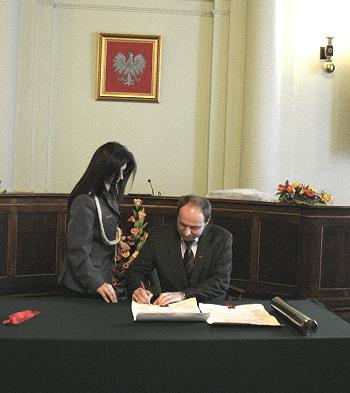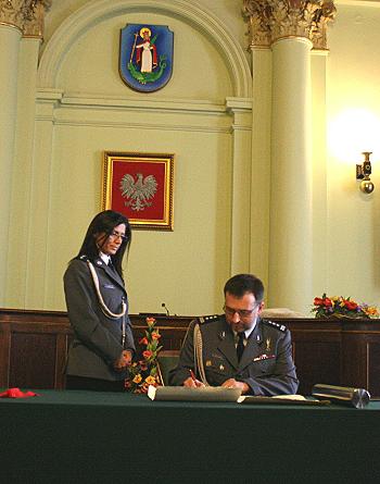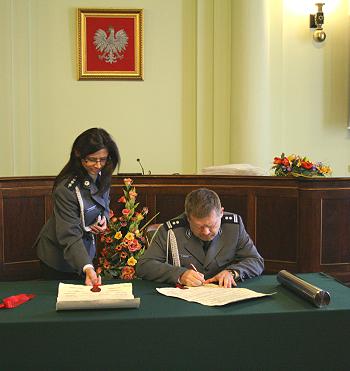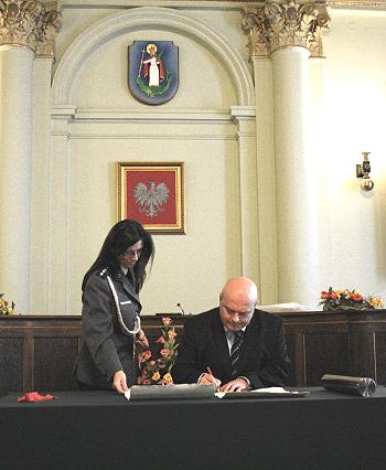 W sali reprezentacyjnej ratusza odczytano treść aktu erekcyjnego, a także przypomniano historię starań o budowę nowej siedziby dla sądeckiego policji. Pod aktem erekcyjnym podpisy złożyli: Wojewódzki Komendant Policji – Andrzej Rokita, Prezydent Miasta Nowego Sącza – Ryszard Nowak, Wicestarosta Sądecki – Mieczysław Kiełbasa, Komendant Miejski Policji w Nowy Sączu – Witold Bodziony, Prezes Zarządu PPHU „ERBET” – Tomasz Ćwikowski.