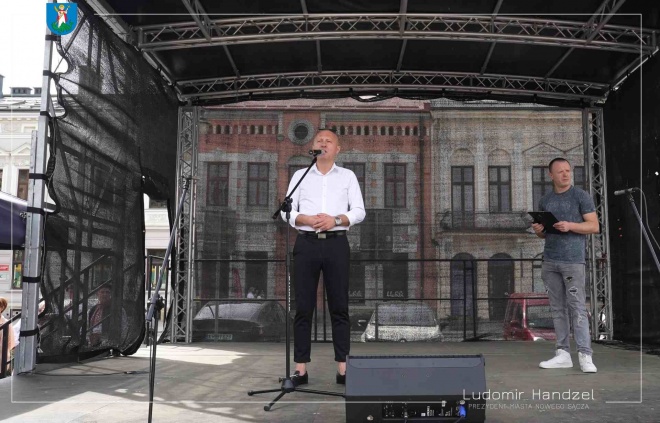 Piękna, słoneczna pogoda przyciągnęła do rynku tłumu mieszkańców. Uczestników imprezy przywitał prezydent Ludomir Handzel.