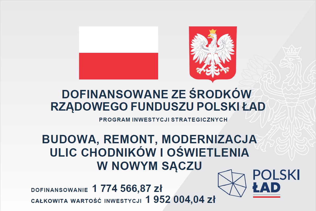 Miasto Nowy Sącz otrzymało dofinansowanie ze środków Rządowego Funduszu Polski Ład Programu Inwestycji Strategicznych na realizację projektu pn. „Budowa, remont, modernizacja ulic chodników i oświetlenia w Nowym Sączu”